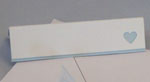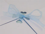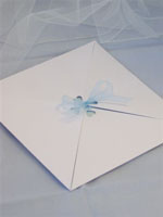 An elegant four-fold design held closed by a delicate organza ribbon looped through the hearts and tied in a bow.