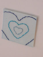 This simple retro design features hand-stitched hearts on a square of organza ribbon attached to a slim and elegant card.