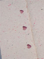 This beautiful invitation is made using handmade textured paper, showing a darker shade through the cut-out hearts along the deckled edge.