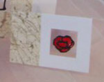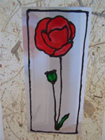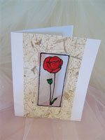 This eye-catching painted glass effect poppy, framed with handmade paper makes an original and unusual invitation.
